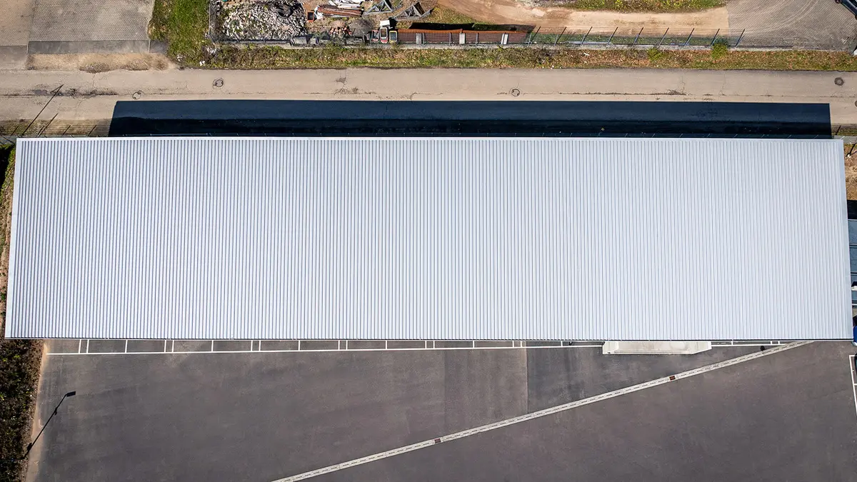 | Leistungen | Stahlbau, wärmegedämmter Betonsockel, Dach & Wand, Dachentwässerung, Tore, Türen, Lichtbänder |